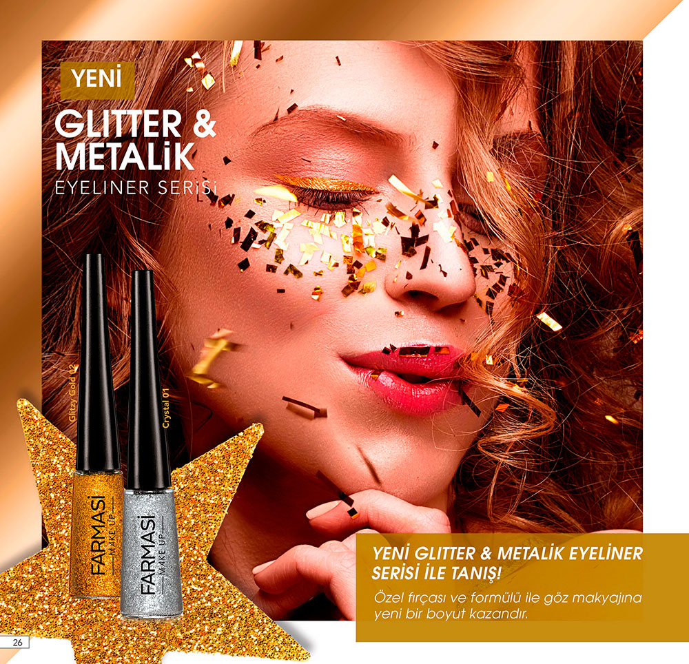 Yılbaşı gecesi ortamların en güzel kadını siz olmak istiyorsanız kesinlikle Farmasi Glitter Ve Metalik Eyeliner Serisi ile gecenin parlayan yıldızına dönüşebilirsiniz. Elbetteki yılbaşı gecesinin kendine münhasır çok özel bir ruhu var. Bu yeni yıla giriş ruhunu üzerinde taşıyan özel gecede non stop müzik eşliğnde sabaha kadar sevdiklerinizle partilemek için çok fazla zamanınız olacak. Ve elbette yenil yıl gecesinde de sıradan görünmek olmaz.
