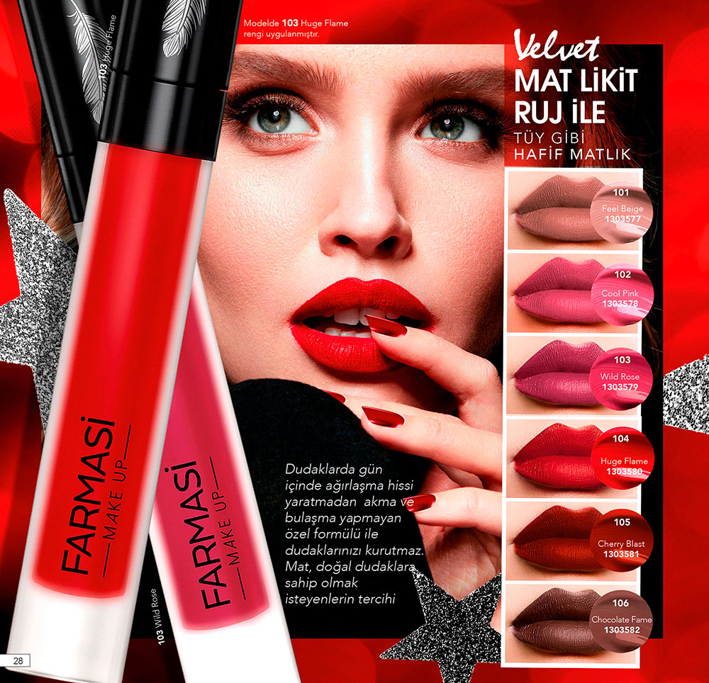 farmasi Velvet mat likit ruj 8 Aralık 2018 tarihinde, Farmasi Yeni Yıla Mat mı Yoksa Parlak Işıltılı Dudaklarla mı Girmek İsterdiniz? yazısında, 1000 × 964 çözünürlüğünde yayınlandı