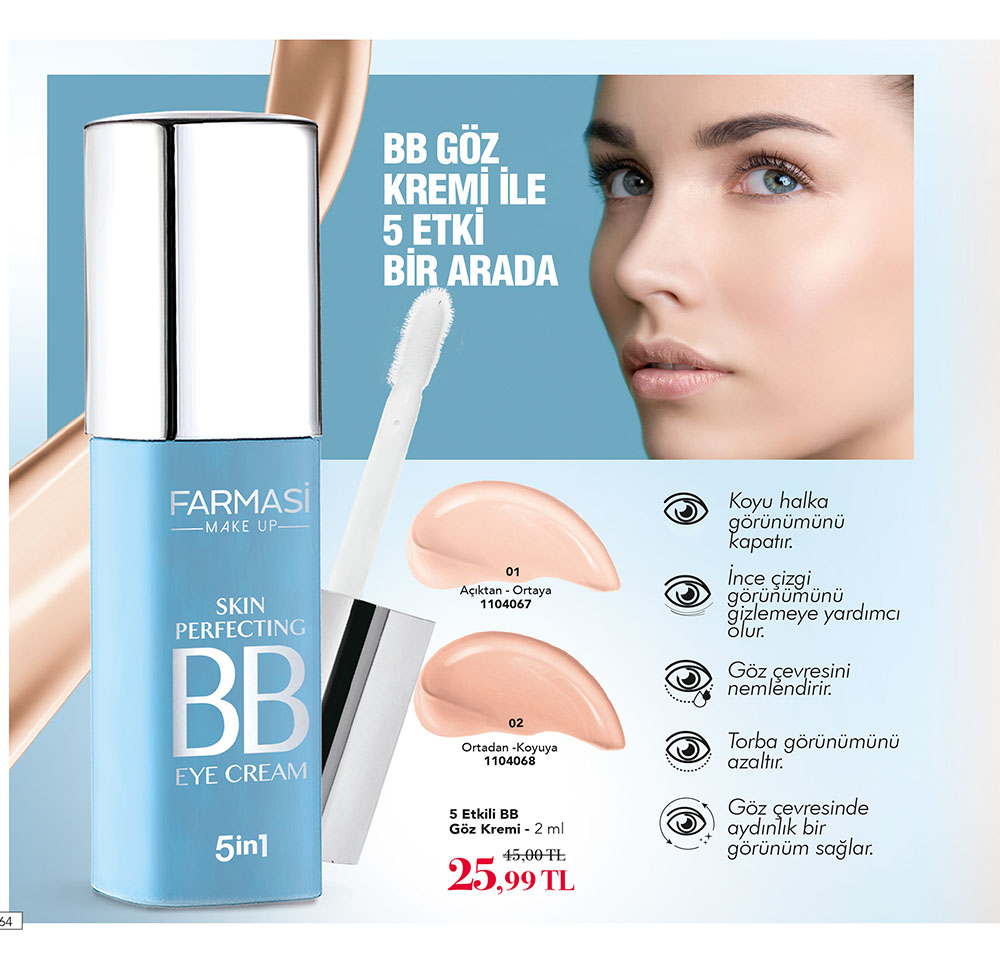 Farmasi BB göz kremi ile dinç ve enerjik bakışları keşfedin! … Zira şimdilerde cilt eşitleyici Farmasi BB kremin ardından tüm kadınlar bu ürünle canlı bakışları yakalıyor. Bu üründe 5 etki bir arada… Yorgun gün ve gecelerden arta kalan zamanlarda göz çevresinde oluşan koyu halka görünümünü bir çırpıda yüzünüzden söküp atan bu ürün, kaz ayakları türevindeki […]